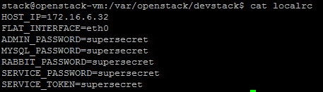 8. During Installation of Openstack other components will also be installed as part of complete installation like MYSQL server, RABBIT server, messaging server. During installation of these components we need to set/insert password manually So to make it automate we create one file localrc in devstack folder and store all required password in it.