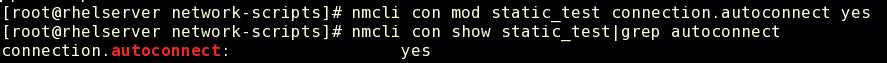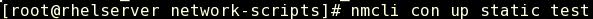 We can modify connection properties using nmcli con mod . Following are connection properties for static_test.