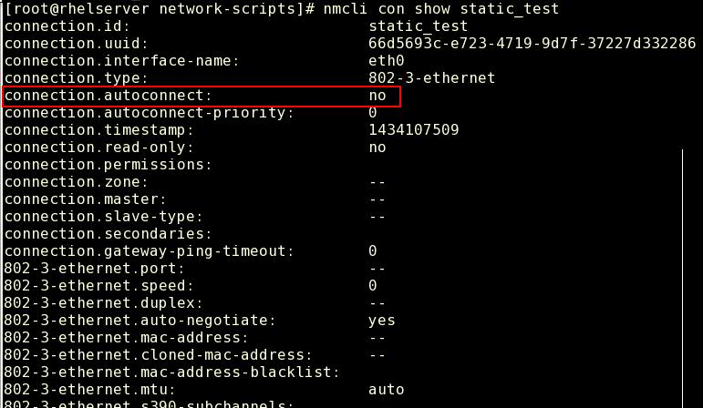 Here connection.autoconnect is set to no. We want to make this connection to autoconnect to yes.