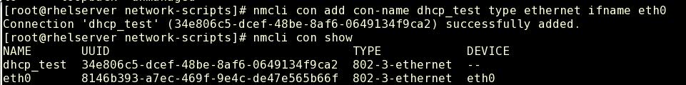 Now we will add one connection dhcp_test which will autoconnect as ethernet connection