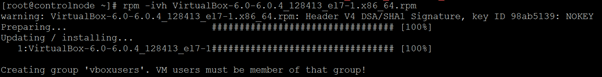 Install the VirtualBox #rpm -ivh VirtualBox-6.0-6.0.4_128413_el7-1.x86_64.rpm